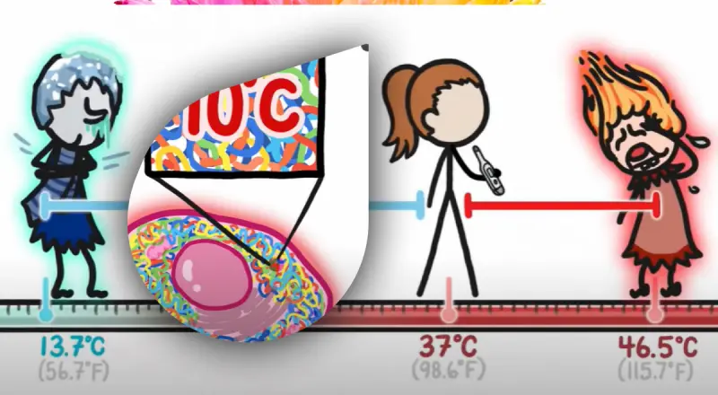 Не всі живі істоти однаково чутливі до температури. Наприклад, деякі бактерії, що мешкають у гарячих джерелах, мають білки, які працюють навіть при 70 °C і більше. Але людські білки мають обмежений температурний діапазон: наша біохімія налаштована на вузький інтервал — приблизно від 36 до 40 градусів.